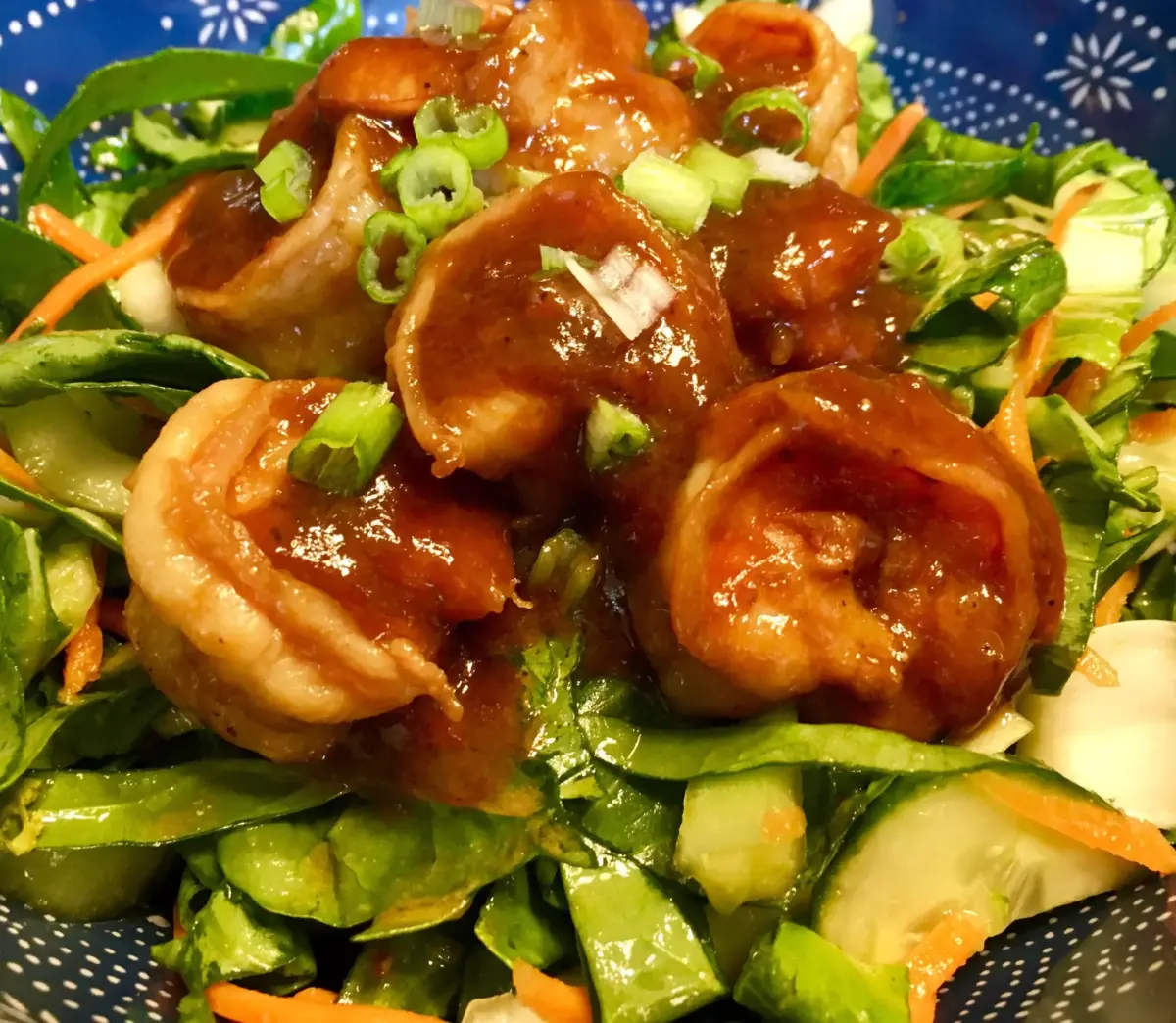 - Serve over a salad, rice, or zoodles and top with sliced green onions.