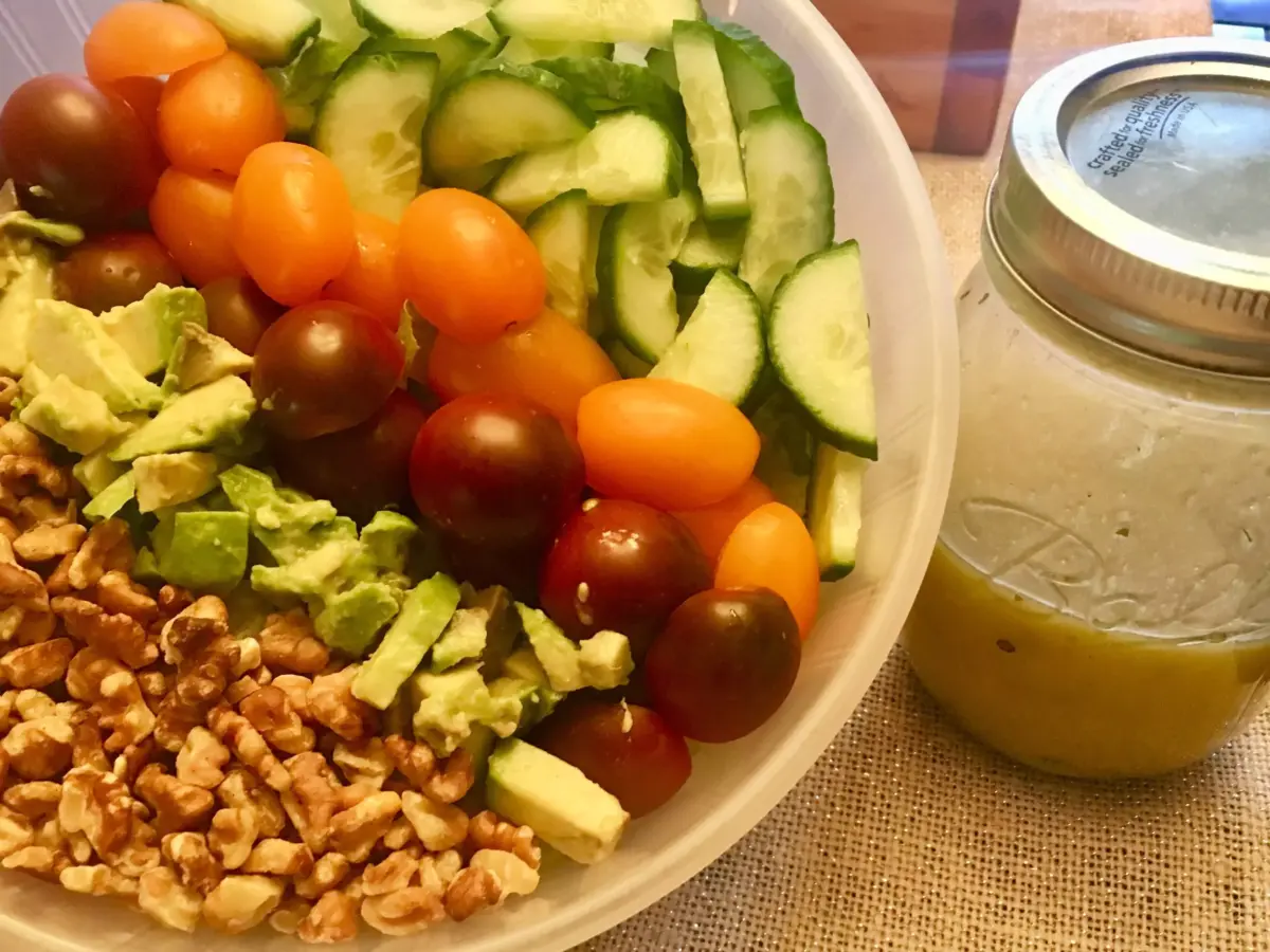 - For the dressing, combine all ingredients in a mason jar and shake until smooth and creamy (or use a blender).
